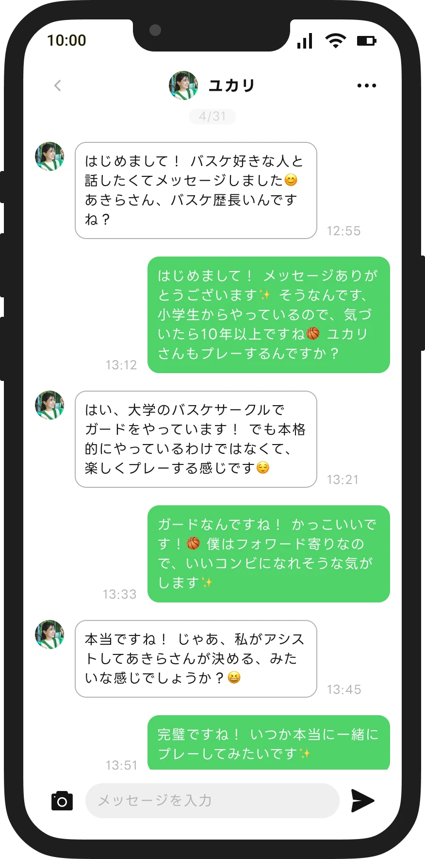 仲を深めましょう。エンスポーツでは、マッチングした相手とだけメッセージを交換できます。