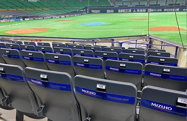 バックネット裏から球場全体を見渡せる特別席。選手の練習も近くで見られて、試合を思いっきり楽しむのにぴったりなシートです。